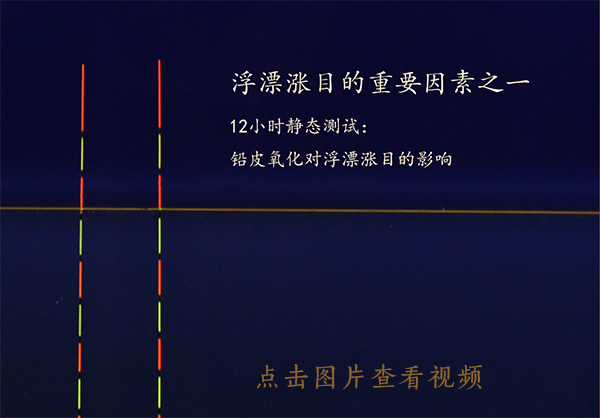 b.測試方法:將兩支掛有相同鉛墜的浮漂同時放水里測試,在12小時后觀察漂目的變化。